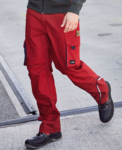 Ergonomische Passform durch Elasthananteil, elastischer Bund mit Gürtelschlaufen, verdeckte Verarbeitung an Knöpfen und Reissverschlüssen, Schubtaschen, diverse Werkzeugtaschen, Zollstocktasche, Handytasche und Stiftefächer, reissfeste 3-fach Naht, elastische leichte Canvas-Qualität, Reflexelemente (ohne Schutzfunktion) an Vorder- und Rückseite, 60° waschbar, trocknergeeignet, in 2 Längen erhältlich: kurz