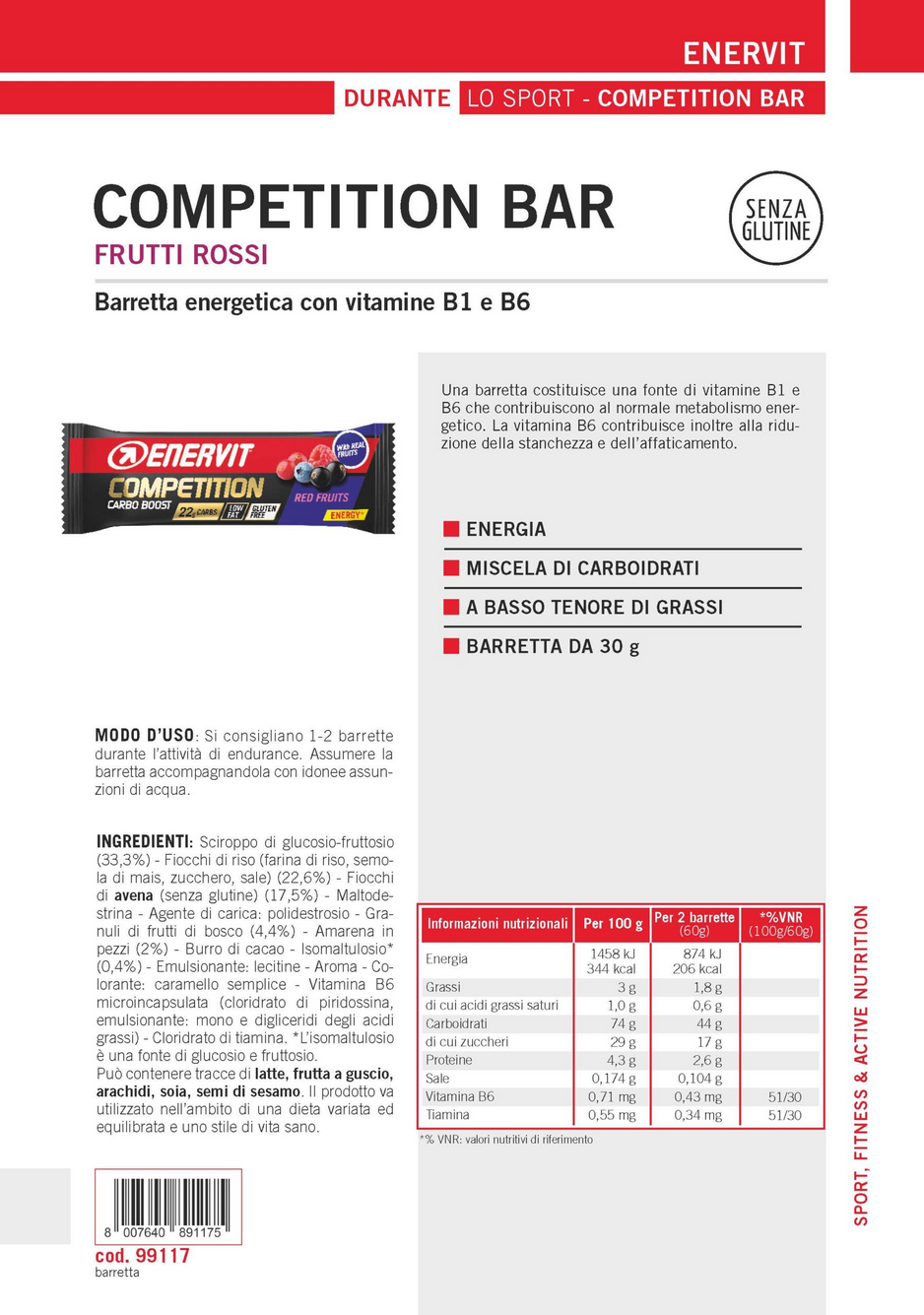 Enervit ENERVIT Competition Bar Red Fruits, 25 x 30 g 99117