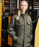 Wind- und wasserabweisend (2.000mm Wassersäule), atmungsaktiv und wasserdampfdurchlässig (2.000g/m² in 24h), Stehkragen innen mit weichem Fleece, abnehmbare verstellbare Kapuze, ergonomisch geformte Ärmel, innenliegendes Ärmelbündchen, durchgehend unterlegter Reissverschluss mit Windschutzblende und Kinnschutz, YKK Reissverschlüsse, Knöpfe und Reissverschlüsse verdeckt verarbeitet, Seitentaschen und Innentasche mit Reissverschluss, Brusttasche mit losem Taschenbeutel zur einfachen Veredelung, diverse Innentaschen, länger geschnittener Rücken, Veredelungszugang am Rücken, robustes und strapazierfähiges Softshellmaterial, Reflexelemente (ohne Schutzfunktion) an Taschen, Ärmeln, Schulter und Rückenteil, 30° waschbar, nicht bügeln, nicht trocknergeeignet
