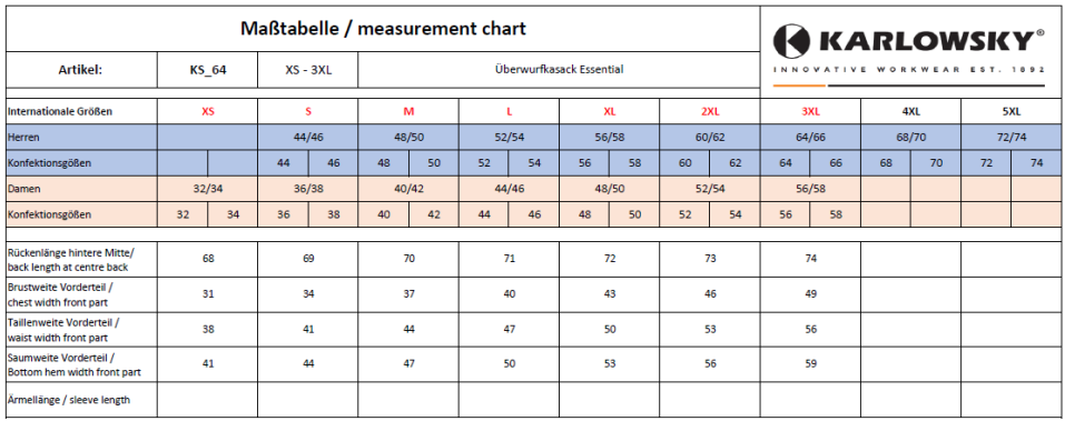 Karlowsky Überwurfkasack Essential KS64 KY132